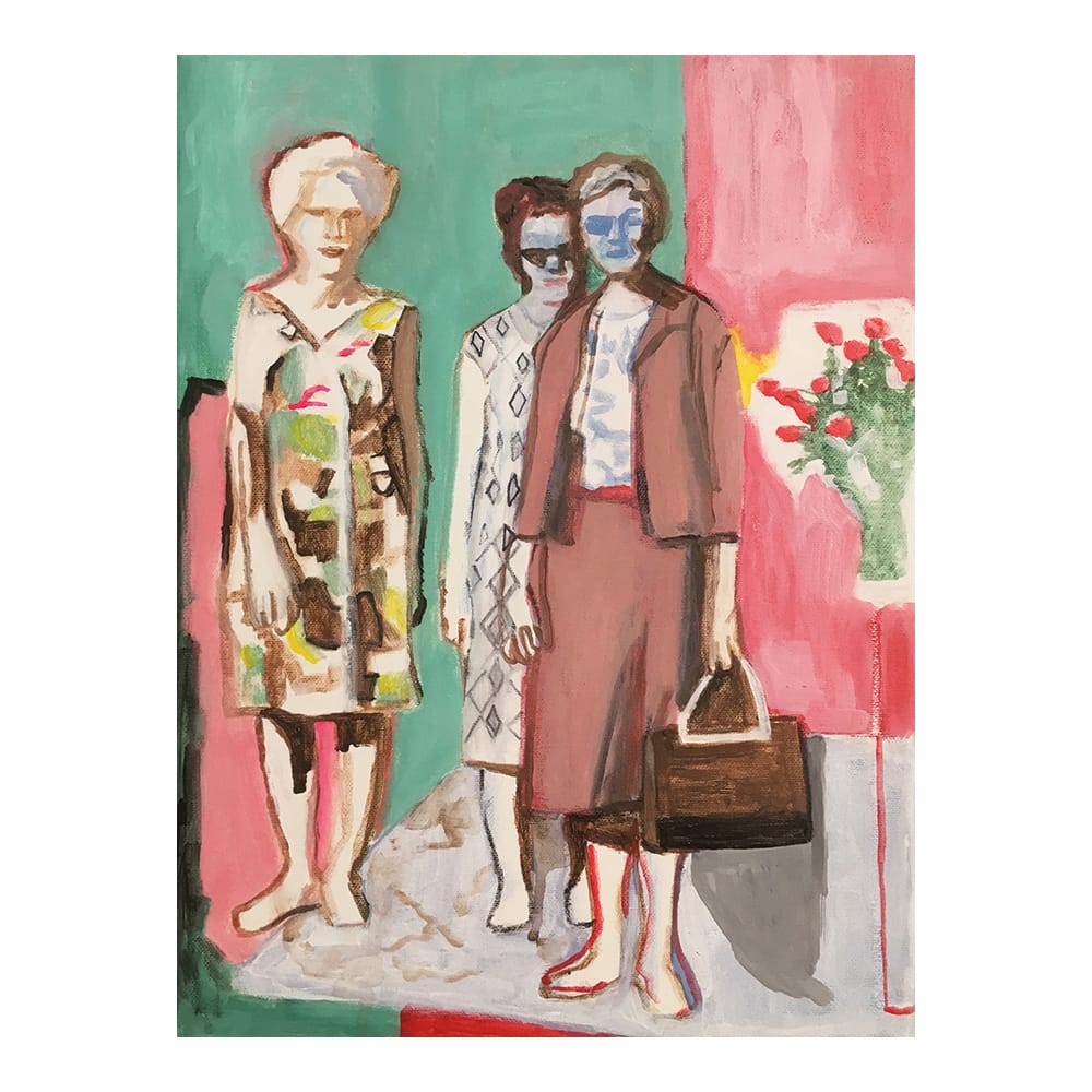 Maria de Vet became fascinated by seeing Velasquez’s “Las Meninas” in the Prado in Madrid and by Goya’s “Las Caprichos”. She finds her inspiration in the work of the old masters from the past century and in today’s mass media: internet, magazines, photos. But also, in her dreams. Maria’s paintings are created by digitally composing images. She uses work she previously painted, and combines them with photos, taken or found. She creates with a collage-like technique of cutting and pasting, both digitally and spatially, a unique world that is a source of inspiration for her paintings. Her work evokes a feeling of nostalgia but is painted in a contemporary manner. Maria shows everyday scenes with a sense of humor. People and animals are usually central to Maria’s work, and in particular women. Animals appear in her paintings because they enliven the image.